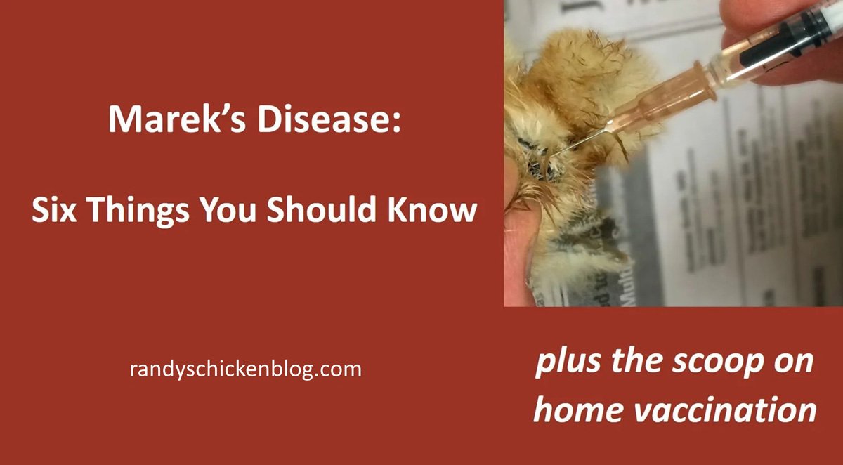 Marek’s Disease - Six Things You Should Know covers the symptoms, pathology, and prevention strategies for Marek’s, including home vaccination. It’s a long post, is somewhat technical, and deals with a depressing, widespread, fatal disease. It is not light reading.