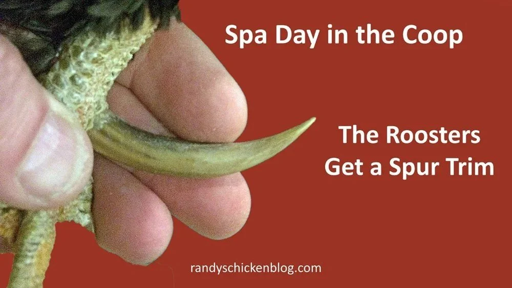 There was that day in 2016 when I noticed that one of Emile the Rooster’s spurs was growing so curved that it was almost winding back into his leg. Spurs can indeed sometimes grow all the way back into a rooster’s leg, causing pain and lameness. I instantly knew that Emile needed a trim—before that spur grew any more. And I decided that we would take care of all the guys while we were at it.
